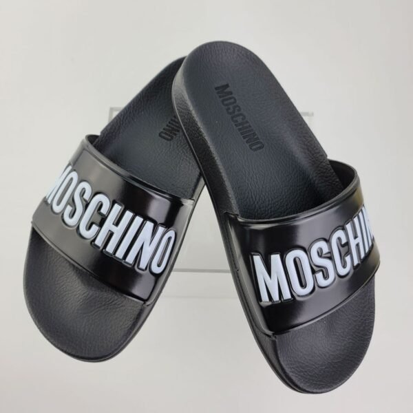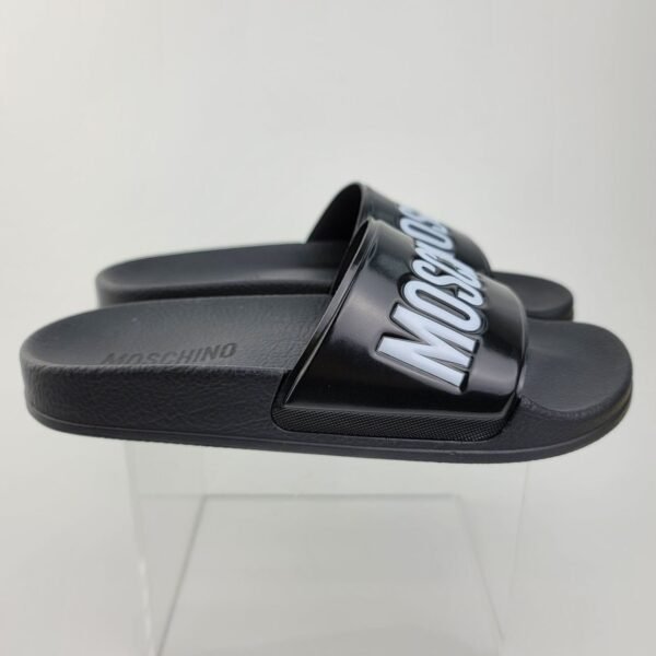 Moschino Pool Slides Black With Embossed White Logo
