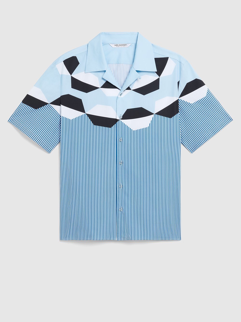 An abstract, Cubism-inspired take on the Fair Isle motif features across this camp-collared bowling shirt. It’s made in Italy to a Loose fit from cotton poplin.