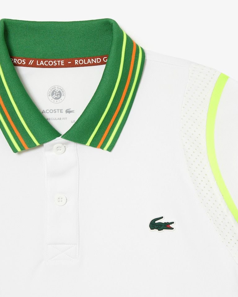 Stand out on clay in striking, 100% Lacoste style. A two-tone polo shirt blending technical prowess with ultimate style.