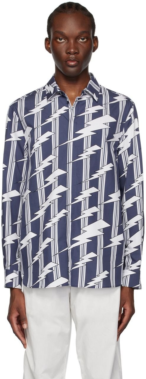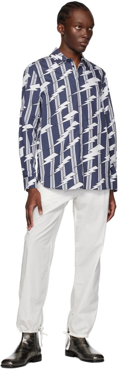 Cotton poplin shirt. Graphic pattern printed throughout.